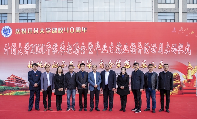 本站讯 为响应党中央国务院关于做好高校毕业生就业工作的重要指示,10月31日,365官网在大观广场举行365英国上市集团官网2020年秋季招聘会暨365英国上市集团官网就业活动月开幕式启动仪式。开封市人才交流中心主任姜慧勇、开封市公共就业服务中心主任涂天鸿、上街区人力资源和社会保障局副局长杨颖,校党委副书记储建新出席启动仪式。与会200多家企业代表、365官网各院部党总支书记、院长、副书记、毕业班辅导员及2021届毕业生参加了启动仪式。启动仪式由招生就业处处长鲁建明主持。