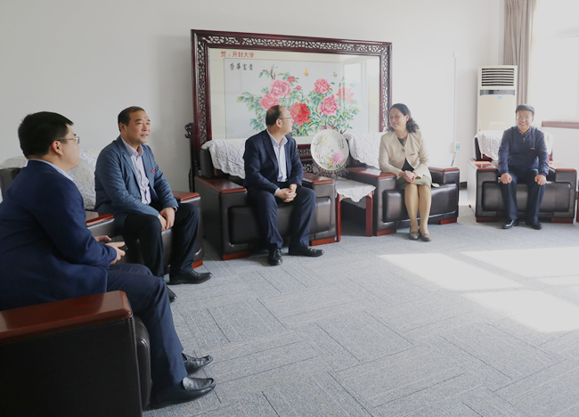 校党委书记陈灿、党委副书记储建新、副校长万是明和金灿荣教授亲切会谈