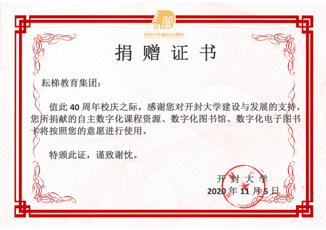 365官网向北京耘梯教育集团发放捐赠证书,并向耘梯教育集团支持建设发展表示感谢。