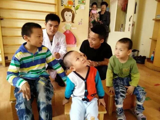 魏树铮与市残疾儿童康复中心的孩子们交流