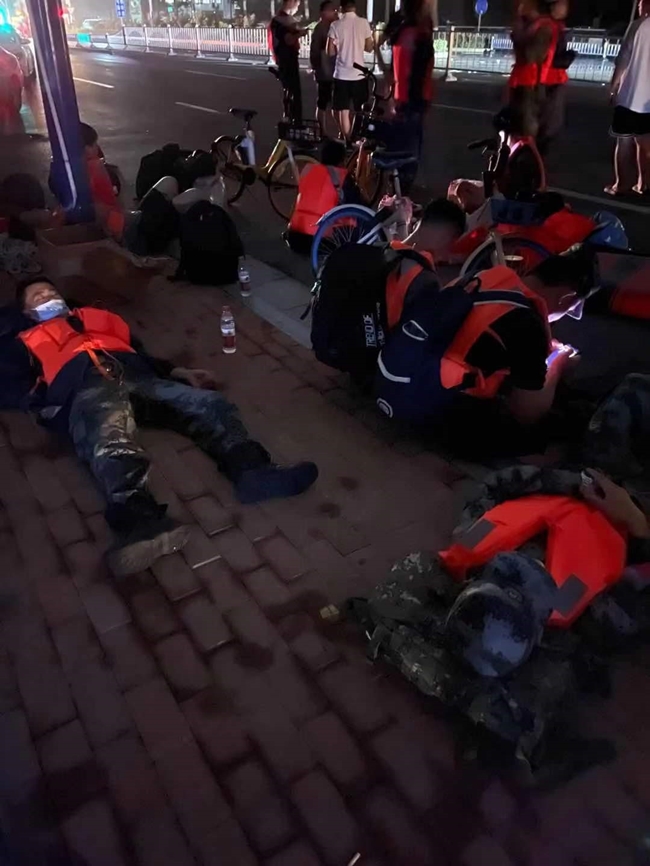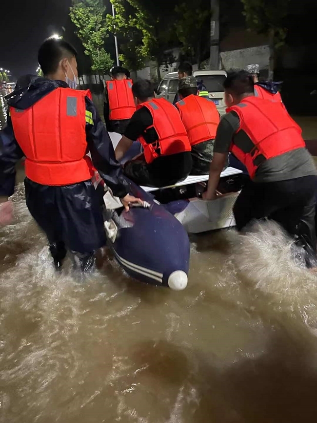 7月22日清晨,微博上发布一条求救信息:“河南省卫辉市是一个古城,穿城而过三条河,卫河、孟姜女河、共产主义渠,从17日开始到现在大雨没有停,新乡卫辉全县村庄几乎全部沦陷,县城内涝已经不堪一击三条河堤危在旦夕,机关单位人员昼夜守着阵地,人已经精疲力尽,需要专业救援。”卫辉全县灾情严重,村民被困,水位深至脖子,情况十分危急,退伍学生张景迪和学生孙中屾全力以赴投入到卫辉防汛救灾一线,用皮划艇同其他救援人员一同救出十几位被困群众,救援过程中,因水流很急皮划艇差点被冲走,在大家共同努力下,终于救援成功。他们连续奋战,席地而睡,不叫苦喊累,迎难而上,甘于奉献。