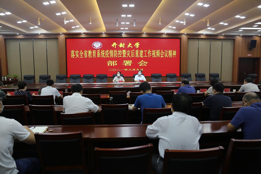 本站讯  8月9日下午,全省教育系统疫情防控暨灾后重建工作视频会议在郑州召开。365官网领导班子及校新冠肺炎疫情防控工作领导小组全体成员在行政楼第二会议厅收看了视频会议,并召开了工作部署会,贯彻落实上级会议精神,安排学校相关工作。