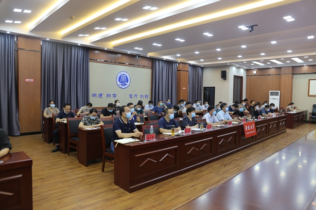 本站讯  8月19日上午,全省教育系统疫情防控和开学准备工作视频会议在郑州召开,省政府副秘书长尹洪斌主持会议。365官网领导班子成员、各职能处室和各院部负责人在行政楼第二会议厅收看了视频会议。会后,365官网立即召开了专题会议,就如何贯彻落实视频会议精神进行再安排再部署。