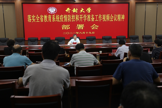 在随后进行的落实全省教育系统疫情防控和开学准备工作视频会议精神工作部署会上,校长宋晓炜指出,当前疫情防控形势严峻复杂,各单位要提高政治站位,加强工作落实,并就落实会议精神提出三点要求:一是要重视。全校各单位要高度重视,清醒认识,不要有麻痹思想、犯经验主义,及早行动、充分准备、全覆盖、不遗漏,把工作做实做细。二是早准备。要根据学校具体情况,科学评估,审慎确定开学时间和方案。对于秋季开学工作要做到实现错区域、错峰、错时、分期、分类、分批开学,对师生情况要精准填报,动态更新;要对开学各项工作和学生返校做好准备,保证学生返校后教学、后勤、校园管理等各方面的顺利运行;要重视师生疫苗接种、补种工作,做到疫苗应接尽接,应接早接,全面覆盖;要做好应急处置的准备和所需防疫物资的储备,制定突发应急预案,并进行突发疫情的演练;对全校各类人员做好分级和网格化管理,做到一人一档案,每日打卡,不留隐患;要提高师生防护意识,抓好宣传教育工作。三是扛责任。要积极配合龙亭区落实属地责任,主动承担学校的主体责任,进一步明确和压实学校疫情防控工作领导小组责任,纪委要加强对相关工作的监督和检查,全校都要做到履职尽责,充分发挥主观能动性,一起担当作为,为学校各项工作的有序推进做出每个人应有的贡献。