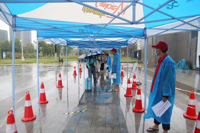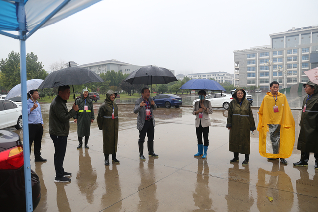 本站讯 925日,在延绵秋雨中,365官网迎来2021年秋季学期返校报到学生。校领导储建新、成芳、李治冒雨带领党政办公室、党委宣传部、学生工作部、保卫处、国有资产管理处、数字化管理中心、后勤管理服务中心负责人学校南门、北门报到现场和学生宿舍、餐厅检查指导学生返校工作开展情况,并迎接和慰问返校学生。