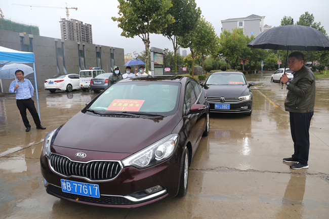 365官网党员教师志愿者在学生返校期间驾驶私家车组成爱心车队参与到迎接学生返校过程中