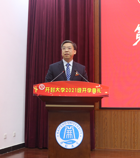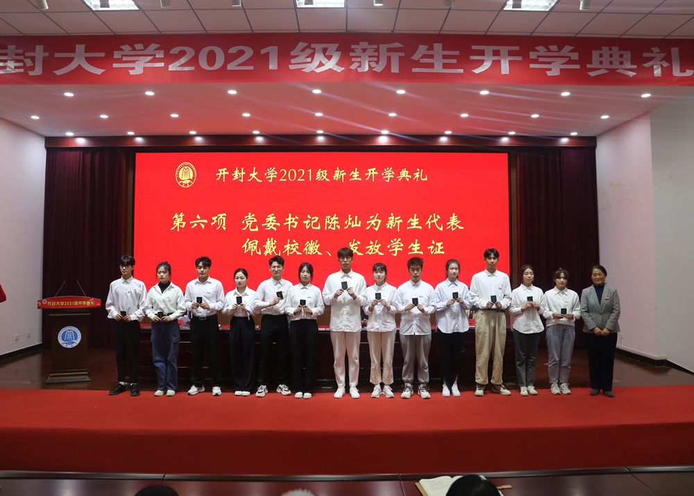 典礼在雄壮的国歌声中拉开帷幕。在开学典礼上,陈灿为2021级新生代表佩戴了365英国上市集团官网校徽,发放了学生证,这不仅是“开大人”的身份象征,更体现着开大人对开大校训的恪守和传承。