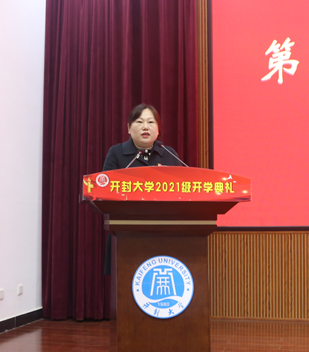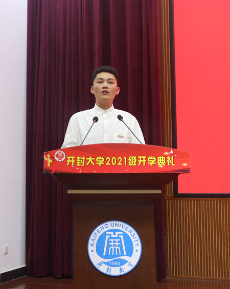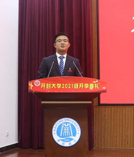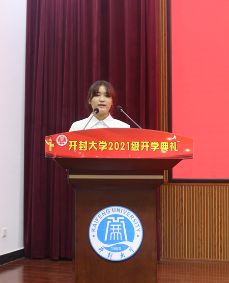 土木建筑工程学院2021级新生李梦娇在发言中表态,作为新生,将牢记陈书记、宋校长的深情嘱托,用自己的实际行动践行“明德、励学、笃行、创新”的校训,争做有理想、有追求、有担当、有作为、有品质、有修养的开大学子!