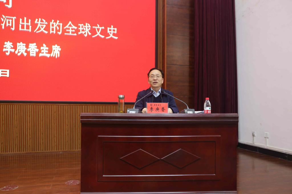 李庚香以《大哉黄河一一部从黄河出发的全球文明史》为题,围绕中原学与黄河学的关系、黄河文化研究应该聚焦的五大内容、黄河学的未来三个方面,详细介绍了黄河文明在中华文明中的重要地位,深刻阐释了传承弘扬黄河文化意义,强调了新时代背景下,我们的使命就是要建设文明黄河轴心区,书写一部从黄河出发的全球史,再塑黄河文化引领力,延续历史文脉,坚定文化自信,彰显中华民族本色,增强中华民族的底气,增进中华民族建构人类命运共同体的勇气,契合新时代高质量发展的内在要求,为最终实现中华民族伟大复兴的中国梦凝聚精神力量。