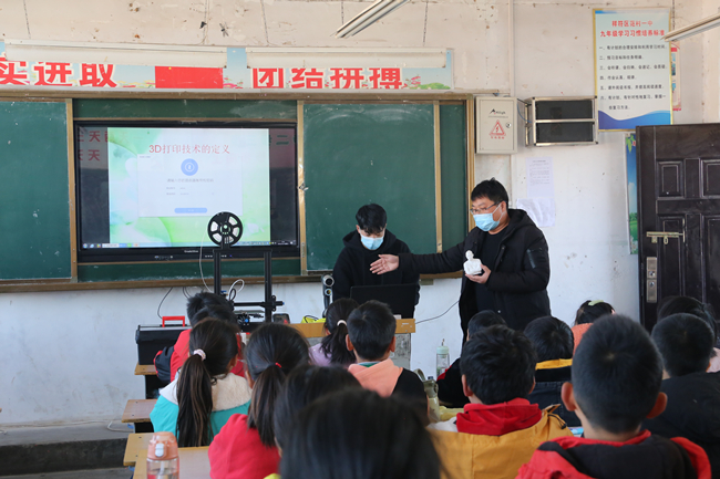 机械与汽车工程学院王春光老师向祥符区范村中心小学学生讲授3D打印技术