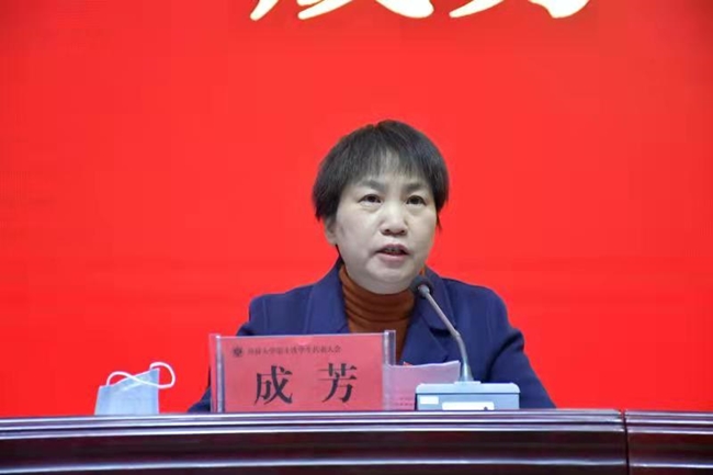 校党委委员、工会主席成芳致开幕词