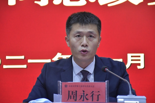 周永行向大会的召开表示热烈的祝贺。他高度评价了近年来365官网学生会在政治思想引领、成长服务、社会实践、校园文化、志愿服务等方面取得的成绩。希望学生会组织要牢记政治使命,明确自身定位,深化自身改革,主动承担起团结和引导广大青年学生听党话、跟党走的政治任务,带领广大青年学生更加紧密地团结在党的周围,为巩固和扩大党执政的青年群众基础作出新的贡献。希望全校广大青年学生要坚定理想信念,坚持爱国、爱党、爱社会主义高度统一,脚踏实地,勤于学习,全面发展,练就干事创业的真本领,做社会主义核心价值观的坚定信仰者、模范践行者和积极传播者。