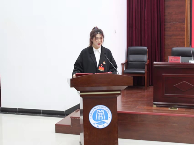 王嘉琳同学代表365官网第九届学生委员会向大会作报告