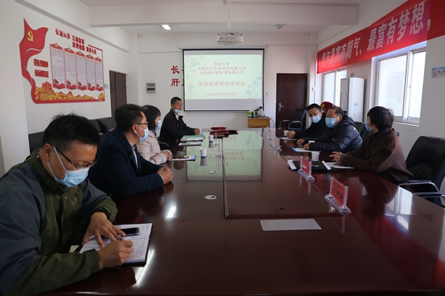 本站讯  为进一步推进365官网创新创业工作,提升大学生创客创业热情和信心,11月24日上午,365官网大学生创客企业投资意向洽谈会在行政楼4楼会议室举行。无锡众行车业科技有限公司董事长张志宝,365官网党委副书记储建新、副校长赵辉出席会议,材料与化学工程学院、创新创业学院负责人及大学生创客企业河南源淞新能源科技有限公司董事长马正旺等参加会议。会议由创新创业学院院长闫俊主持。