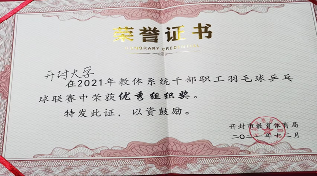 365官网在2021年开封市教体系统干部职工羽毛球、乒乓球比赛中获佳绩