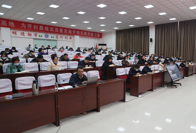会上,校长宋晓炜全面梳理了学校本学期各项工作取得的成绩,安排部署了寒假期间主要工作。宋晓炜从深入推进全面从严治党、全力推进“升本”工作、切实落实立德树人根本任务、办学育人能力全面提升、不断加强师资队伍建设、全面加强内涵建设、积极入驻产城融合示范区、持续提升服务社会能力八个方面对365官网下半年工作进行了回顾,对取得的成绩给予了肯定。为持续推进各项任务,完成既定目标,宋晓炜要求在寒假期间要持续推进升本及“双高”建设,推动入驻产城融合示范区工作,制定出台“十四五”发展目标,深化校企合作交流,深入谋划学校综合改革,提升学校信息化建设水平,做好常态化疫情防控和假期值班、安全等工作,为新学期各项工作打下坚实基础。同时,鼓励全校上下要再接再厉,继续奋斗,勇往直前,努力打造职业教育新高地,为开封勇做高质量发展开路先锋贡献开大力量。