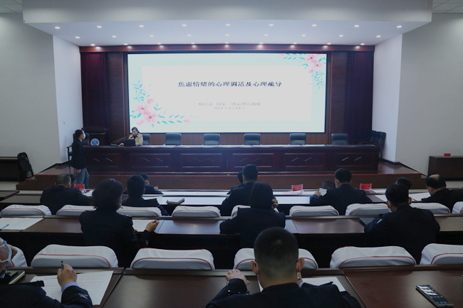 大会结束后,365官网心理健康教育中心教师师彦洁为分局干警做了题为“焦虑情绪的调试和疏导方法”的讲座。师老师针对基层干警面临的工作压力,解读了焦虑情绪的根源、引发因素、对身心健康的影响并讲授了多种调试、疏导方法。讲座最后,又为干警同志们做了专业的焦虑心理测评。据悉,此类讲座将定期开展,并会每季度针对分局干警开展一次心理健康调查。