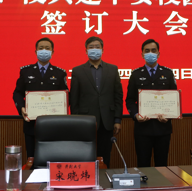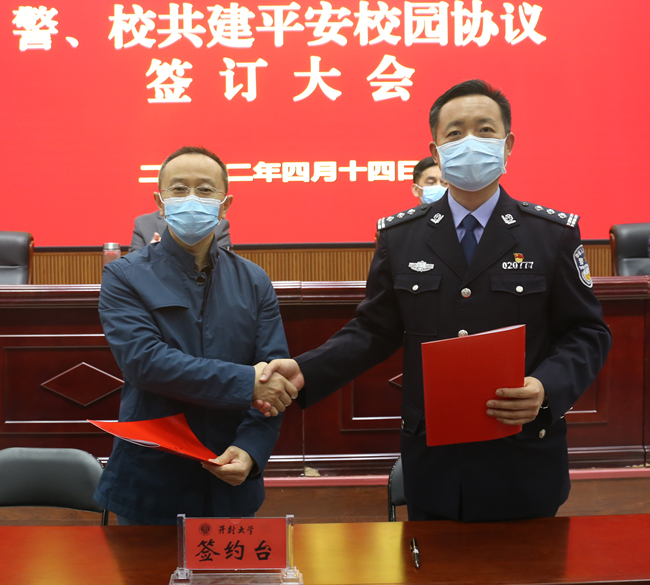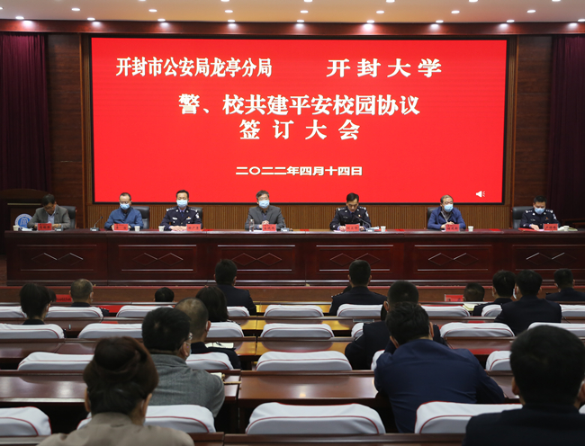 会上,副校长李治与开封市公安局龙亭分局政委徐广勇签署了《警、校共建平安校园协议书》。