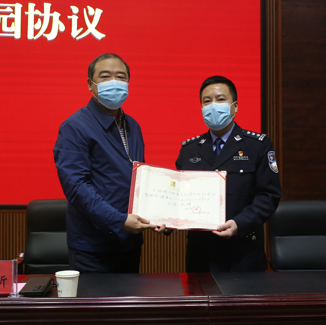 副校长李治签署《警、校共建平安校园协议书》并颁发法制辅导员聘书