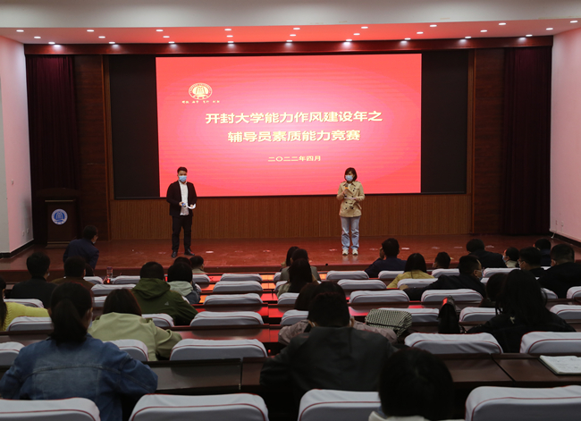 本站讯  为进一步提升365官网辅导员队伍的综合能力,根据学校“能力作风建设年”的活动安排,按照“大学习、大培训、大练兵、大提升”的能力提升活动要求,4月14日下午,365官网举行了辅导员素质能力竞赛。校党委副书记储建新出席活动,各院部副书记观摩比赛,全体辅导员老师参加比赛。竞赛由学生工作部副部长杜瑞主持。