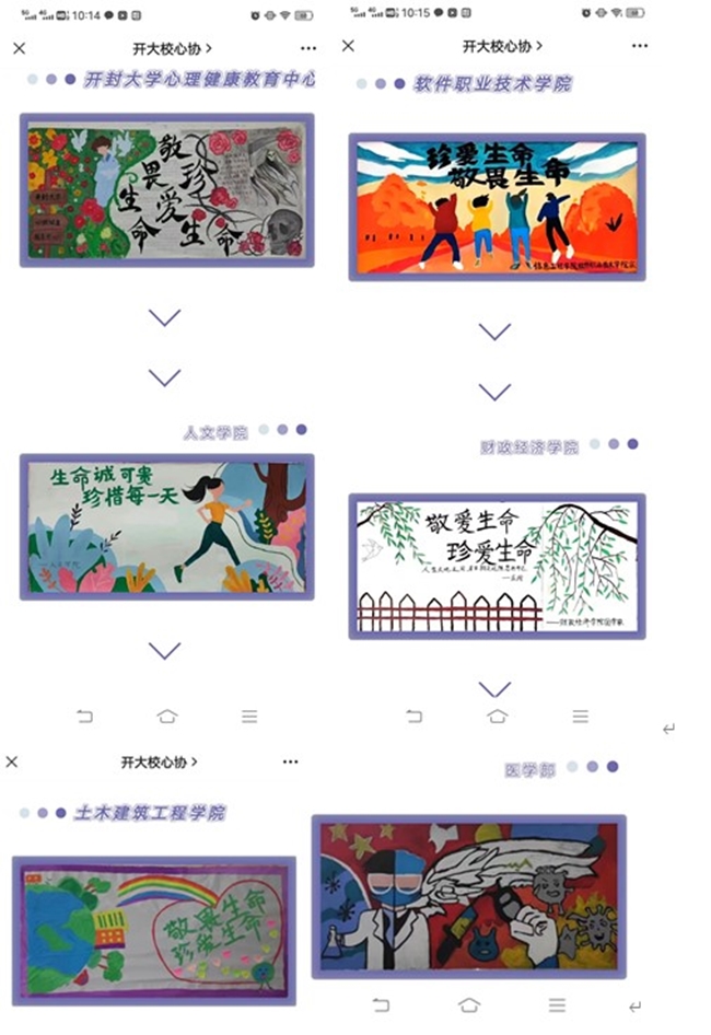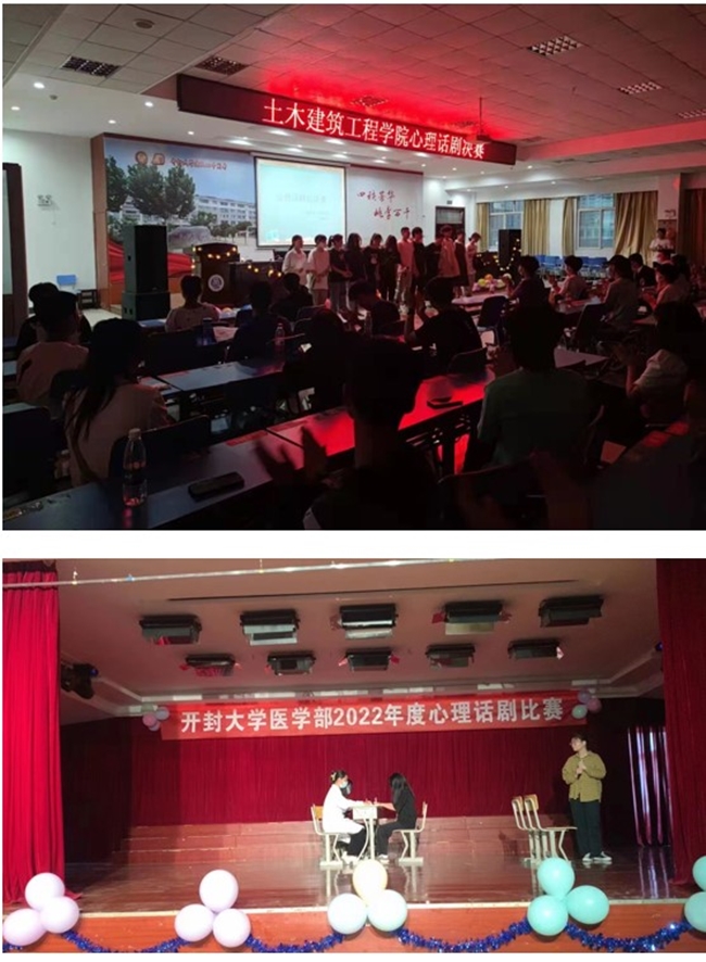 心理健康教育中心以清明节为契机,组织开展了以“敬畏生命、珍爱生命”为主题内容的名言警句书法展、板报展,充分通过特殊节日进行教育。随后,组织了班干部心理健康素质拓展活动,主要以经典的心理团体辅导活动“鼓动人心”“千千结”“珠行万里”“踩气球”等为内容,来营造校园健康氛围,培养心理健康教育学生专员的能力。同时,心理健康教育中心指导各二级心理辅导站开展校内游活动和心理剧比赛,组织学生有序的参观其它院部特色教室、活动室、实训室等。此类活动不仅能让学生了解、体验不同的专业特点,感受不同院部的人文特色、别样氛围,开阔了学生视野、丰富课余生活、有效的缓解了疫情封校管理带来的压力情绪。