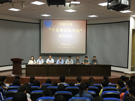 本站讯 5月12日下午,“十足集团股份有限公司”助学金颁发仪式在国际教育学院一楼报告厅举行,365官网党委副书记储建新、十足集团人资部部长洪彬、招聘经理彭颖出席了颁奖仪式,365官网校企合作处、学生处,国际教育学院等部门负责人、部分教师代表和全体连锁经营与管理专业的学生参加了颁奖仪式。仪式由国际教育学院党总支副书记吴文静主持。
