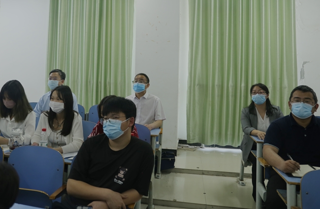 本站讯 5月6日上午,校长宋晓炜到15号教学楼221教室,随堂听取了朱淼老师的《思想道德与法治》的课程讲授。党政办公室、党委宣传部负责人和马克思主义学院党政班子一同听课。