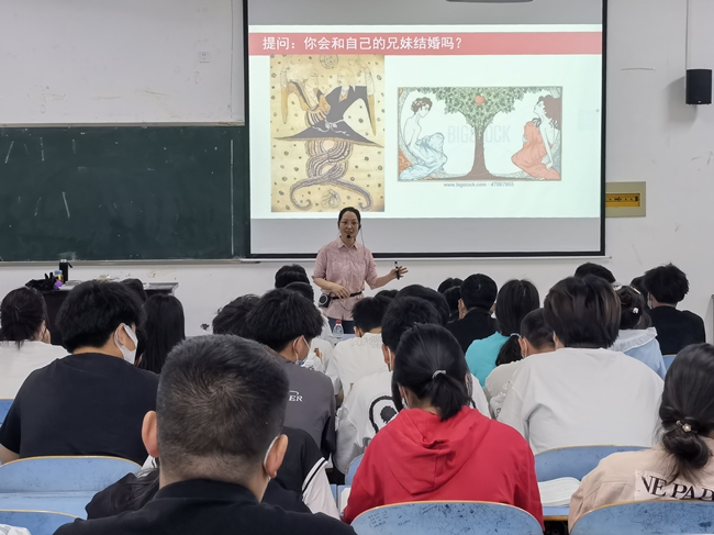 朱淼老师以“民法典之婚姻家庭篇”专题的形式进行了生动的讲解,以“特殊的婚礼”小视频作为专题的导入,深深地吸引住了学生。紧接着,朱淼老师用问题链教学方法,并用鲜活的案例阐释了什么是婚姻、婚姻法的基本原则等,通过案例让学生了解涉及婚姻方面的法律法规,引导学生要树立正确的爱情观、婚姻观、家庭观。