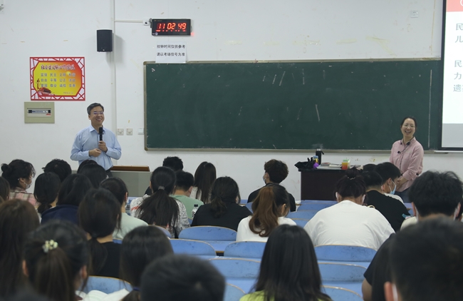 宋晓炜边听边记,对学生的听课状况非常关注,并在下课后利用课间时间与师生进行了亲切的交流。他结合课堂教学内容,联系实际,给同学们阐述了婚姻家庭的社会功能,并给同学们提出希望。希望同学们要高度重视人的社会性,多与人交流,主动融入社会,勇于担负社会责任;希望同学们珍惜大学学习生活,“成人不自在,自在不成人”,要刻苦锻炼才干,正确对待爱情和婚姻,成为德才兼备的时代新人;希望同学们正确对待自由,要明白人的自由是在一定责任条件下的自由,树立正确的自由观,使自己成为一个快乐幸福的人,对国家和社会有用的人。