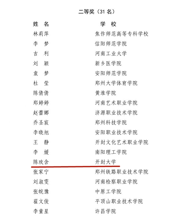 本站讯  近日,河南省委教育工委、河南省教育厅公布了第九届河南省高校辅导员素质能力大赛获奖名单,代表365官网参赛的土木建筑工程学院辅导员陈玫含荣获二等奖。