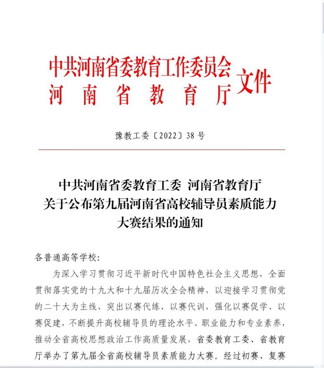 365官网辅导员在第九届河南省高校辅导员素质能力大赛中喜获佳绩