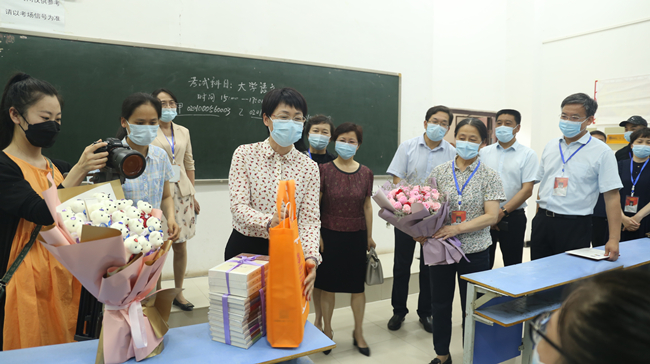 开封市妇联主席高晓燕和校领导陈灿、宋晓炜、赵辉、成芳一行共同看望慰问专升本病患考生袁琳林