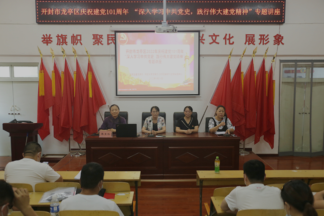 本站讯  6月29日,365官网组织教师深入开封市龙亭区新时代文明实践中心开展庆祝中国共产党成立101周年“深入学习中共党史 践行伟大建党精神”专题报告。龙亭区宣传部副部长熊亚杰、文明办副主任王春玲,校党政办公室、党委宣传部、马克思主义学院负责人等参加此次宣讲活动。活动由熊亚杰主持。
