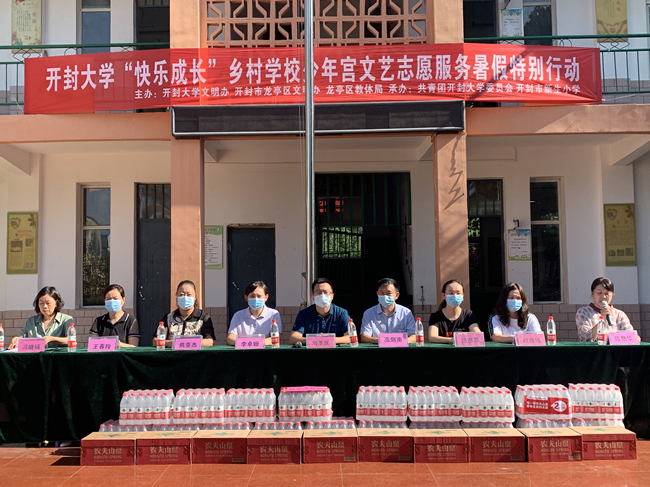 本站讯  7月18日上午,由龙亭区文明办和365官网文明办主办,365官网团委承办的“快乐成长”乡村少年宫文艺支教志愿服务暑期特别行动在龙亭区新生小学举行启动仪式。校党委宣传部、团委,龙亭区文明办、教体局、团委相关负责人和20余名返乡大学生志愿者参加了此次活动。