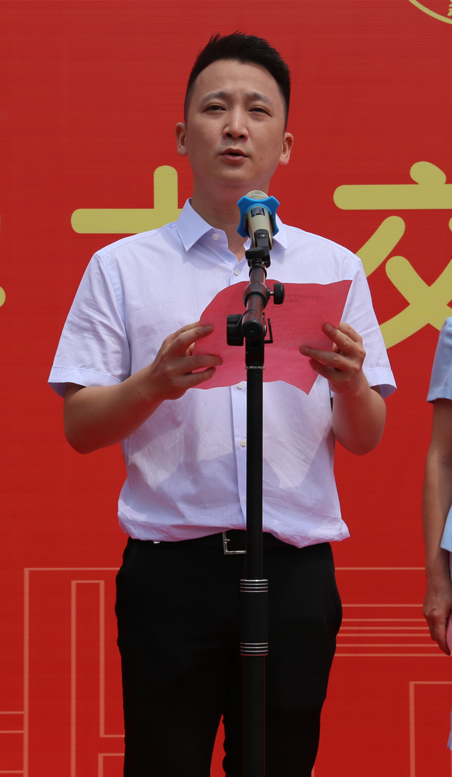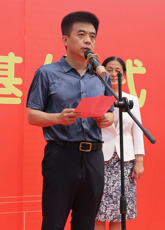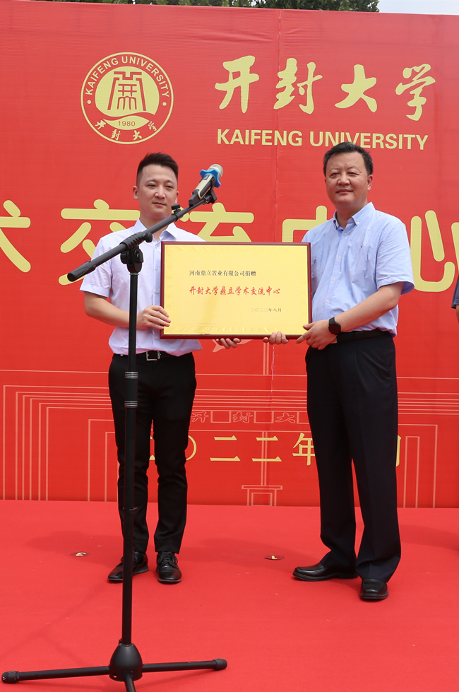 市委常委、市委秘书长张松文向河南鼎立置业有限公司颁发捐赠纪念牌并宣布工程开工