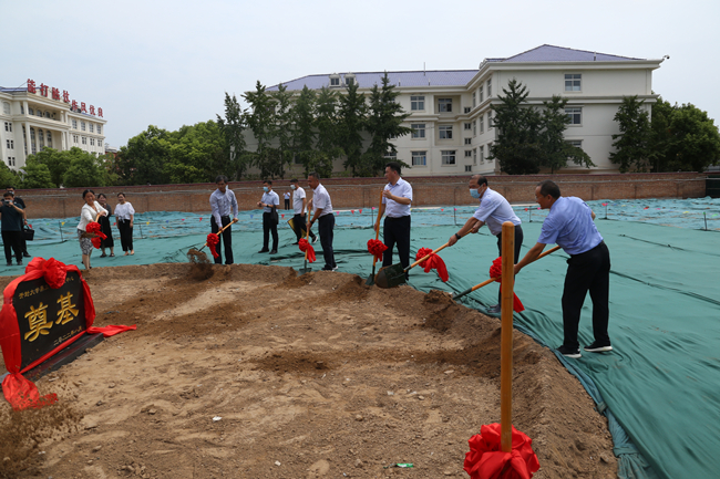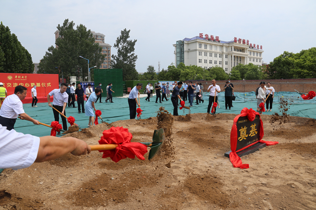 与会领导和嘉宾为365英国上市集团官网鼎立学术交流中心工程培土奠基,全体参会人员共同见证了这充满爱心、振奋人心、坚定信心的重要时刻。