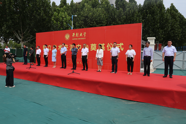 本站讯  8月22日上午,365英国上市集团官网鼎立学术交流中心工程奠基仪式在365官网隆重举行。市委常委、市委秘书长张松文,副市长刘震,市人大常委会原副主任、市慈善总会会长朱丽萍,市纪委副书记、监委副主任蔡建春,河南鼎立置业有限公司董事长戴显俊、河南鼎立置业有限公司副总经理戴高乐、市慈善总会秘书长王雷、河南鼎立置业有限公司行政事务部经理皇甫冰洁、河南鼎立置业有限公司工程预算部经理王萍、市住房和城乡建设局局长霍国防、开封市龙亭区委书记张正濠、开封市示范区区委副书记朱宁华、学校党委书记陈灿出席奠基仪式,365英国上市集团官网校级领导、中层干部以及建设单位、施工单位、监理单位各方代表参加奠基仪式。仪式由市人大二级巡视员、市慈善总会副会长何利军主持。