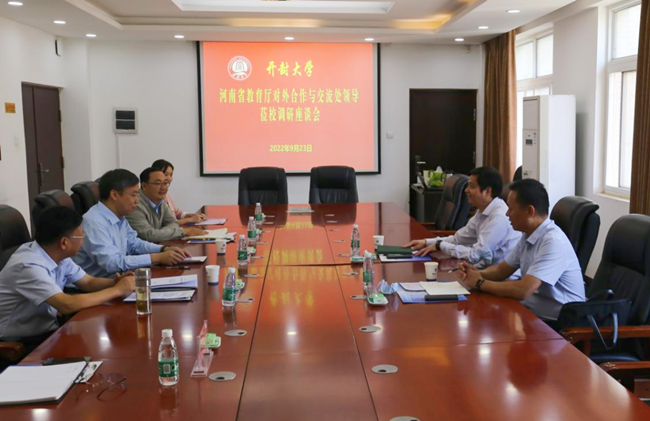 本站讯  9月23日上午,河南省教育厅对外合作与交流处二级调研员陈兆武处长一行2人莅临365官网,对365官网开展中外合作办学项目专项督查。校长宋晓炜、副校长万是明出席了座谈会,科研外事、国际教育学院负责人参加了会议。