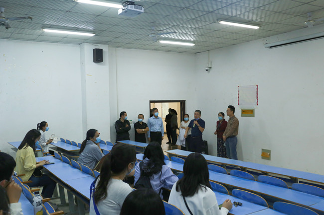 演练开始后,辅导员和学生志愿者模拟学生各类场景,并由相关部门负责人向大家详细讲解了演练流程、可能遇到的问题及解决问题的办法,高度还原遇到问题时的处置流程。校领导全程进行现场指导,对演练中的不足和可能存在的问题提出整改意见,最后由观摩人员进行现场提问。