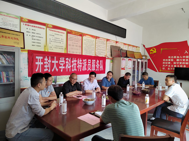 本站讯  9月21日,河南省百年白记农业发展有限公司党支部书记强鸿超、营销部经理苏新杰,开封日报社记者王兰兰,校党委委员、组织统战部部长赵海胜,市政协委员、旅游学院院长丁永琦教授,市级科技特派员、材料与化学工程学院党总支书记侯彦喜教授等一行8人前往尉氏县大桥乡十里铺村开展技术赋能乡村振兴工作。