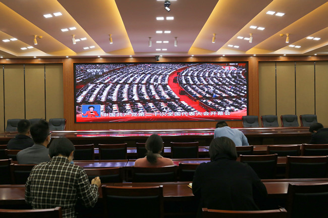 365官网师生收听收看中国共产党第二十次全国代表大会开幕会