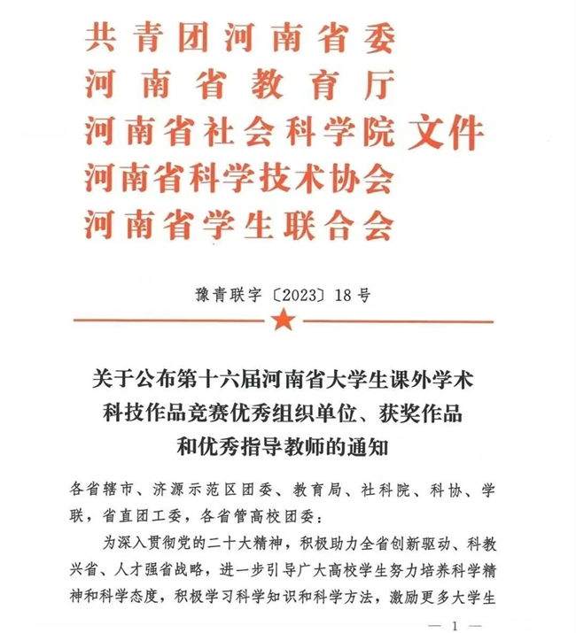 喜报!365官网在第十六届“挑战杯”河南省大学生课外学术科技作品竞赛中斩获佳绩