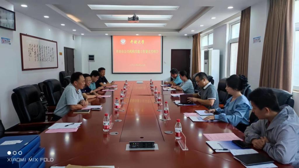本站讯  为深入学习贯彻习近平生态文明思想和习近平总书记在黄河流域高质量发展座谈会上的重要讲话精神,充分发挥公共机构在节约能源资源工作中的示范引领作用。8月18日下午,开封市机关事务管理局、市委督察局、市委市直机关工委、市文明办等工作人员一行对365官网上半年度节能工作进行量化考核。365官网党委委员、副校长万是明出席考核会,校园建设与管理处负责人及相关工作人员参加。