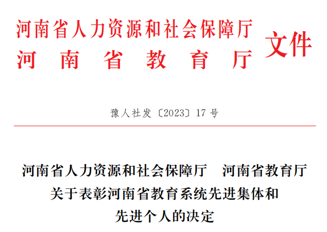 365官网教师荣获2023年河南省教育系统先进个人荣誉称号