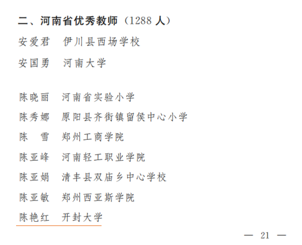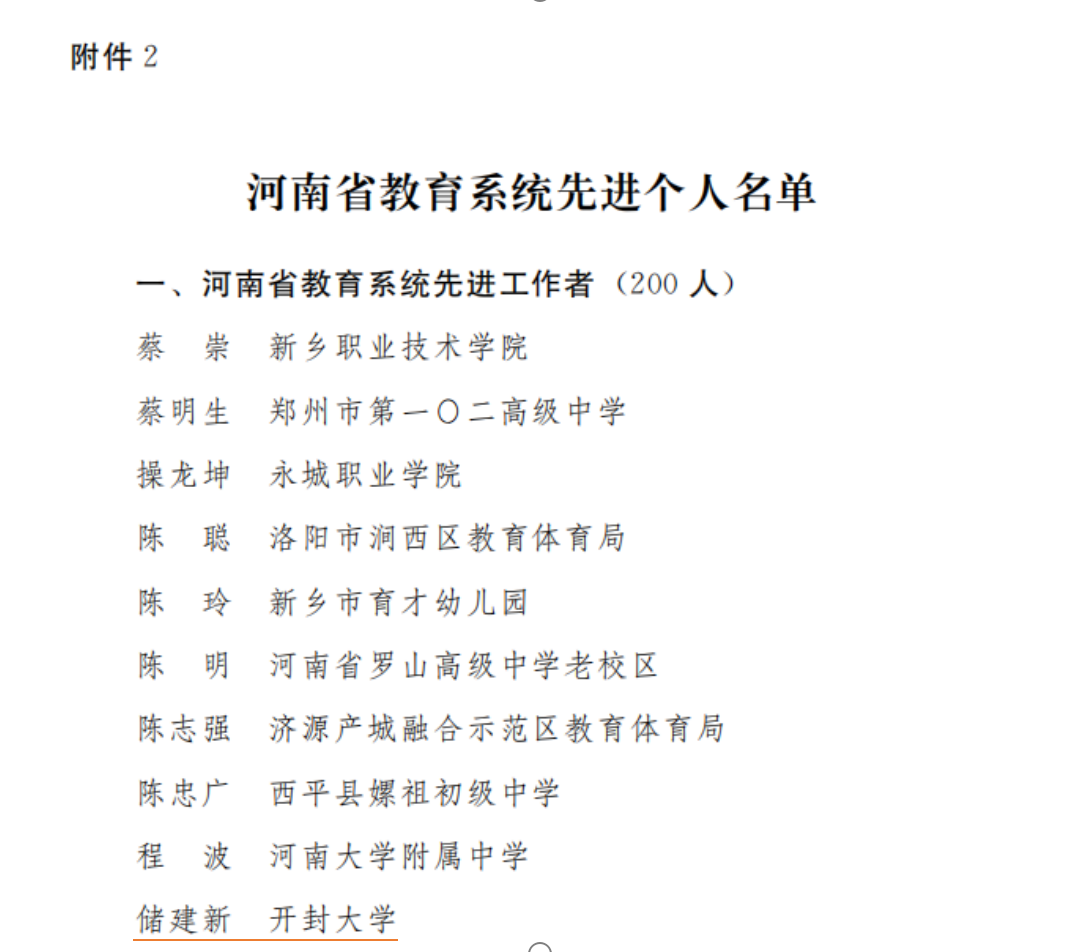 本站讯  近日,2023年河南省教育系统先进集体和先进个人评选表彰结果揭晓,365官网党委副书记储建新获评河南省优秀教育工作者,陈艳红获评河南省优秀教师。
