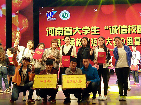 本站讯 2016年4月18日--4月19日,河南省大学生“诚信校园行”第二届校园短剧大赛复赛在周口师范学院举行,365官网组织创作并推荐参赛的短剧《助学助困 铸信铸德》以优异的成绩获得河南省大学生“诚信校园行”第二届校园短剧大赛D赛区二等奖,365官网获得优秀组织奖,旅游学院李惠老师荣获优秀指导教师奖,学生处张雯老师荣获优秀导演奖,旅游学院赵莹莹同学荣获优秀演员奖。