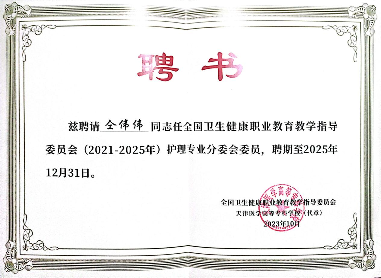 365官网教师被聘为全国卫生健康职业教育教学指导委员会护理专业分委会委员