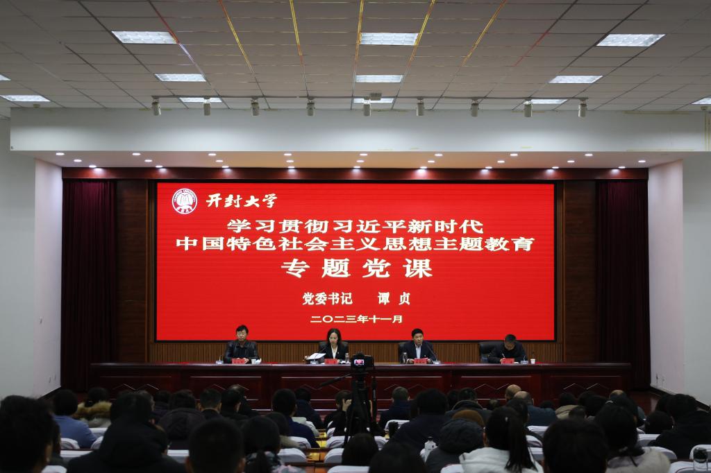 谭贞指出,要深刻领悟中国式现代化的中国特色,不断增强教育强国建设中的使命担当。坚持为党育人、为国育才的初心使命,抓住“中国式现代化”建设带来的新机遇,建好高质量的高等职业教育,引导学生走技能成才、技能报国之路,为服务国家战略和经济社会发展培养更多高素质技能人才;深刻理解中国式现代化的核心要义,加强人才培养在强国建设中的使命担当。要坚持人民至上,站稳价值立场。坚持自信自立,坚守精神特质。坚持守正创新,弘扬时代品格。坚持问题导向,汇聚源头活水。坚持系统观念,掌握科学方法。坚持胸怀天下,提升发展境界;深刻理解中国式现代化的实践要求,服务地方经济发展展现开大使命担当。围绕开封市“16136”总体工作思路,学校将以提升高层次技术技能型人才培养质量为目标,从学校发展、专业建设、师资培养、人才培育等方面深化校企合作、产教融合,将365英国上市集团官网高质量发展融入开封市“六项战略”的实施和“六大片区”的建设中。