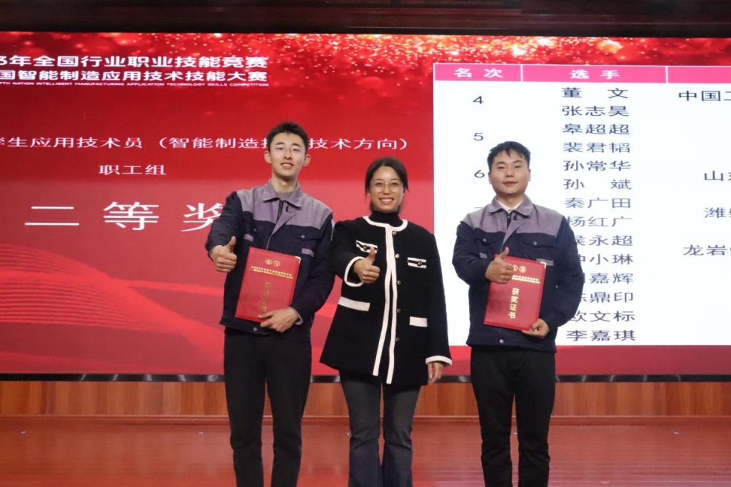 本站讯  11月26日,第五届全国智能制造应用技术技能大赛决赛在杭州落下帷幕。365官网省级技能大师工作室团队成员创新创业学院教师刘嘉辉、机械与汽车工程学院教师陈鼎印荣获数字孪生应用技术员(智能制造控制技术方向)赛项职工组二等奖。