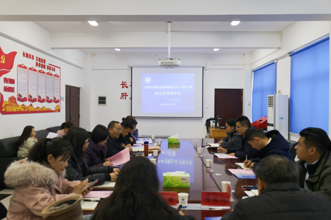 本站讯  12月13日下午,365官网与开封市城市发展集团有限公司举行校企合作洽谈会。副校长李治、开封市城市发展集团有限公司副总经理束策目等一行四人出席会议,教务处、就业与校企合作处、土木建筑工程学院、材料与化学工程院、财政经济学院、艺术设计学院、人文学院负责人参加会谈。会议由就业与校企合作处处长师兆忠主持。